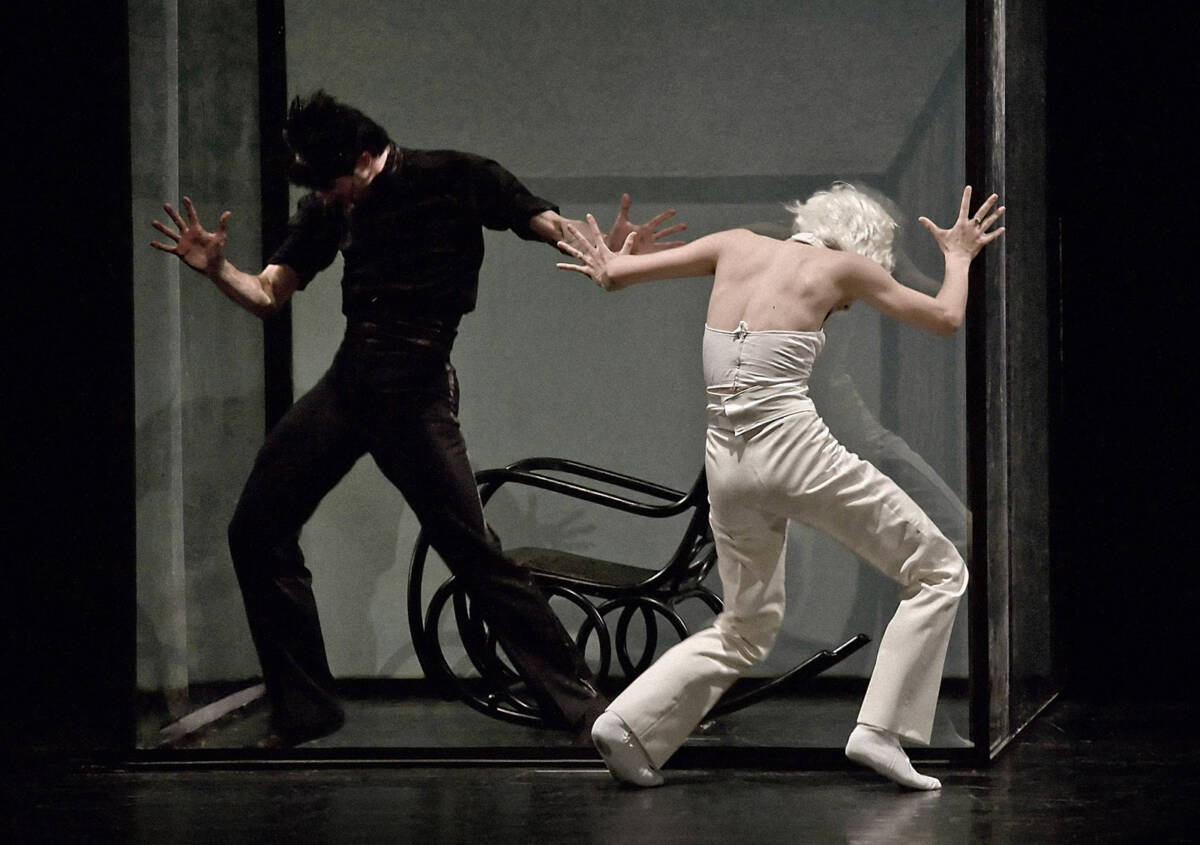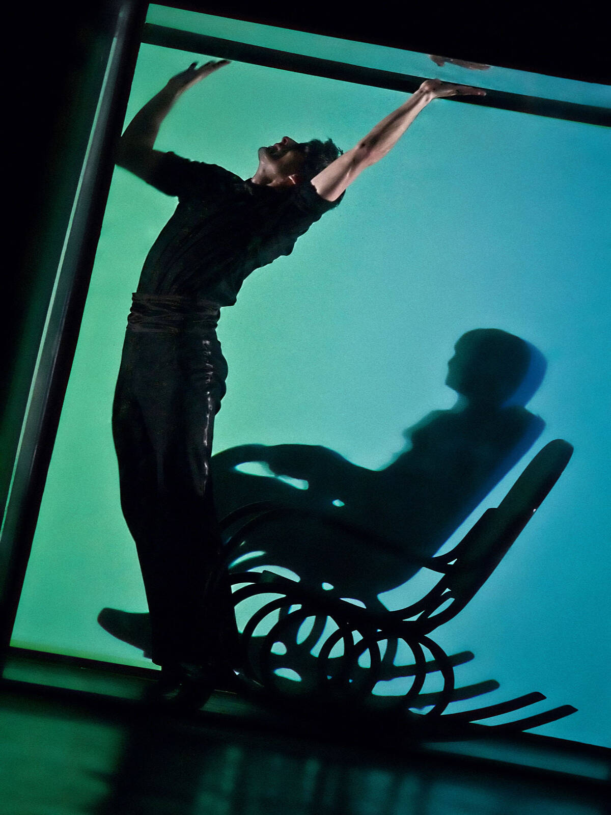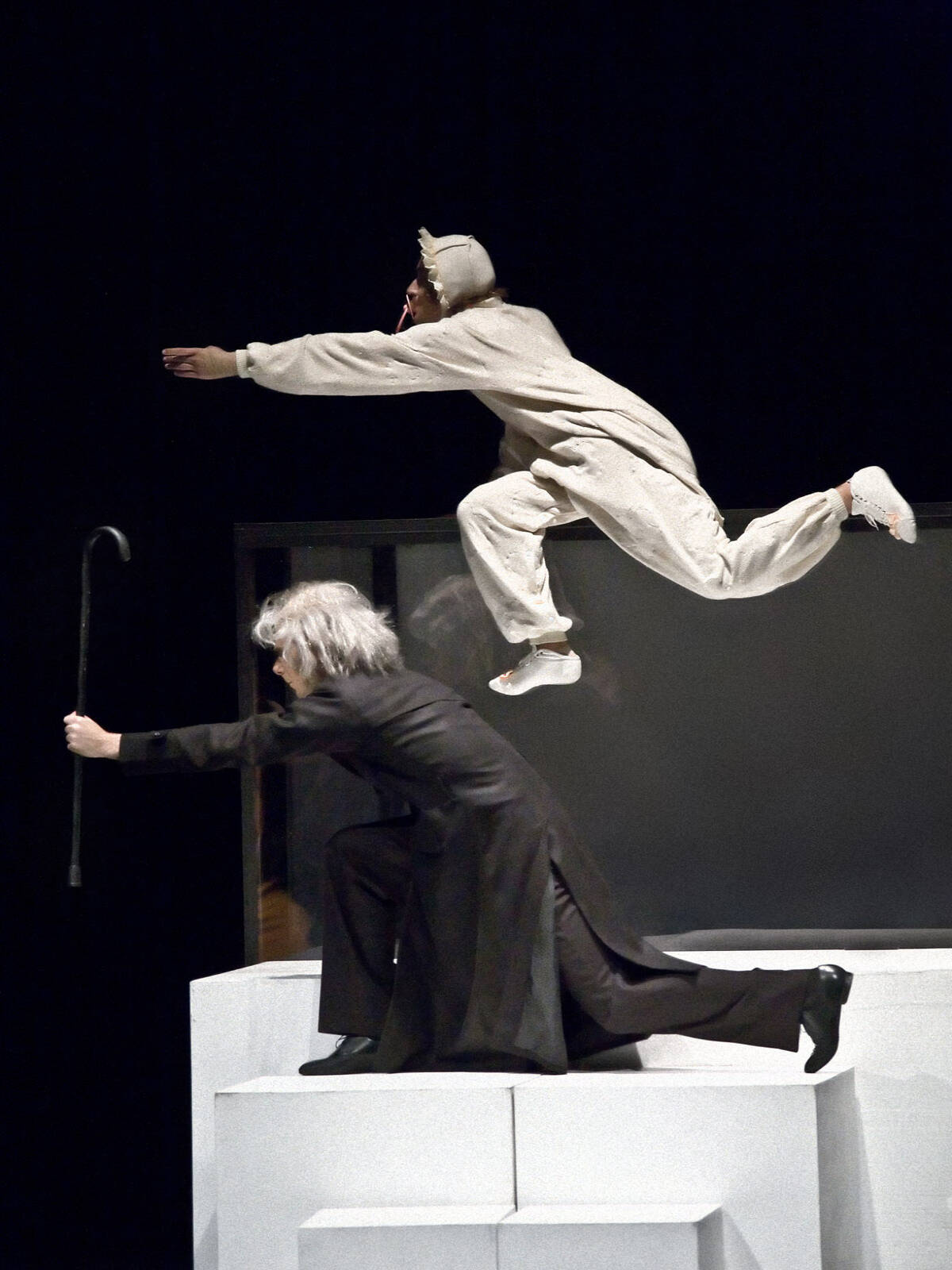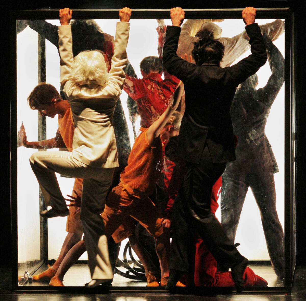 The surrealistic choreography deals with the most fundamental essence of human existence. The deliberately unspecified male characters find themselves in certain phases of life (working age, between childhood and old age). One of the key subjects the production focuses on is the matter of life and death. The two extremes, or the extreme moments of life, are represented by an old man and a toddler. Another plane emphasised in the production is dualism, which pertains to the male and female principles present in each and every person, the male and female traits inherent to every one of us. Even though the protagonists are clad in male costumes, primarily conceived as men, two of them stand out, being purely abstract characters, representing the yin/yang polarity, the light and the dark, the female and the male aspects.