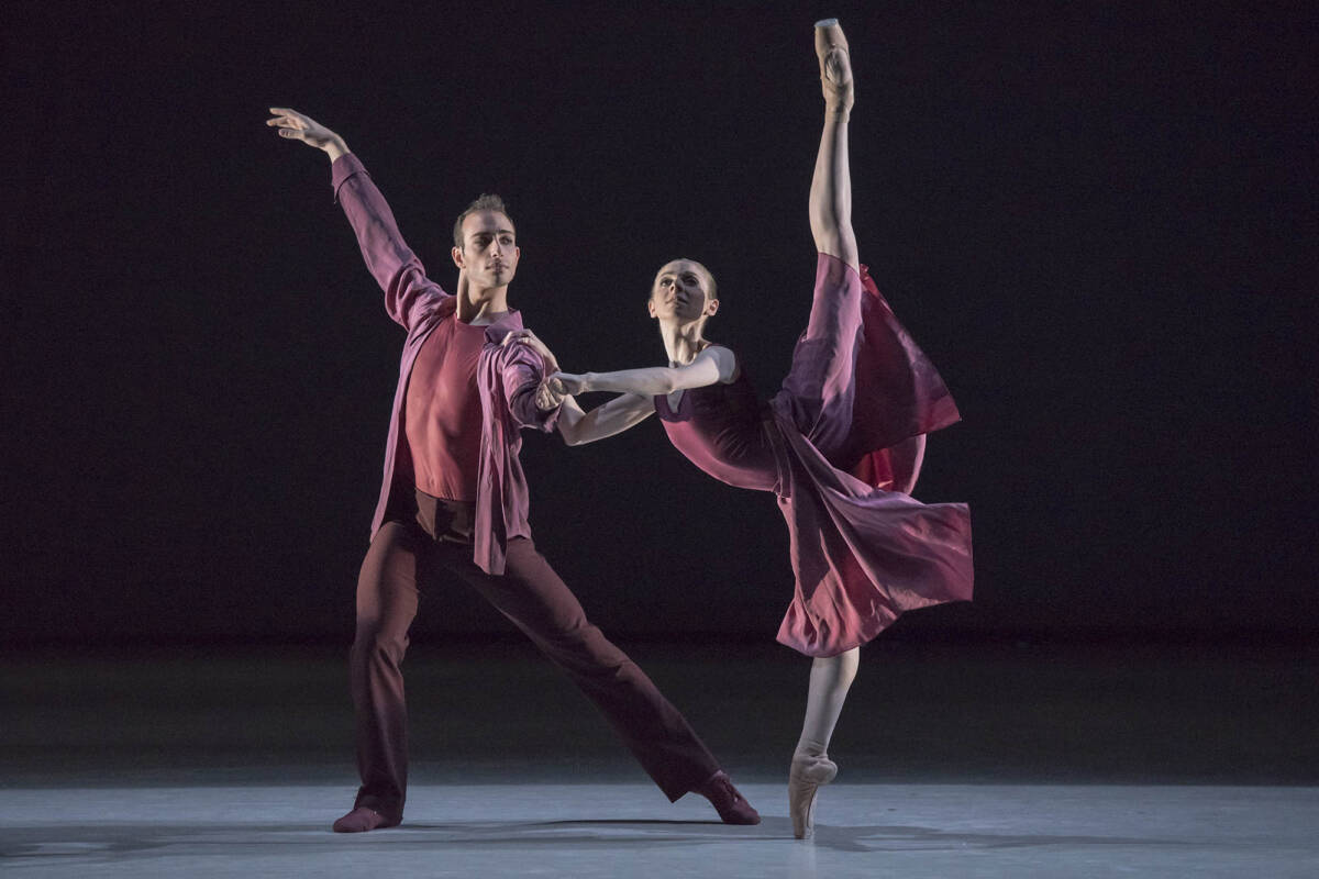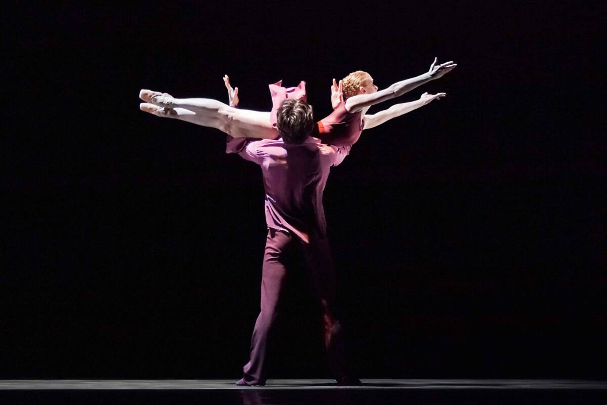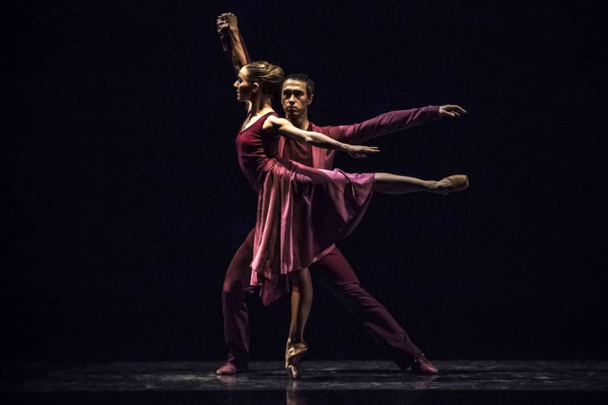 The choreography is somewhat like a dance jest, employing the classical pas de deux to portray the joint passage of a man and a woman through life, their individual desires, harmony and disharmony, separation and seeking of their selves, before ultimately arriving at the serene conclusion that the couple’s relationship can only properly function if they swap their roles, with the woman becoming a man and the man a woman.