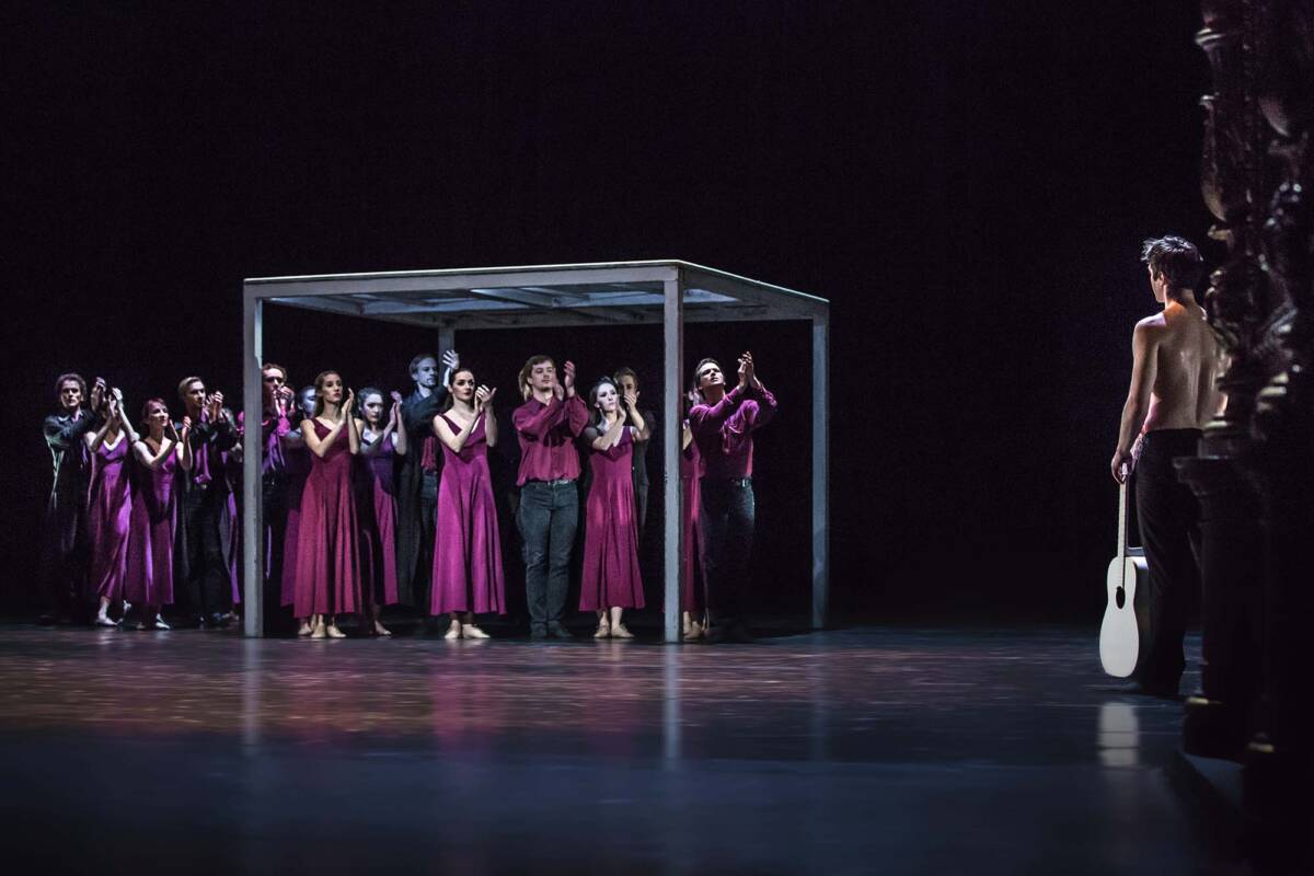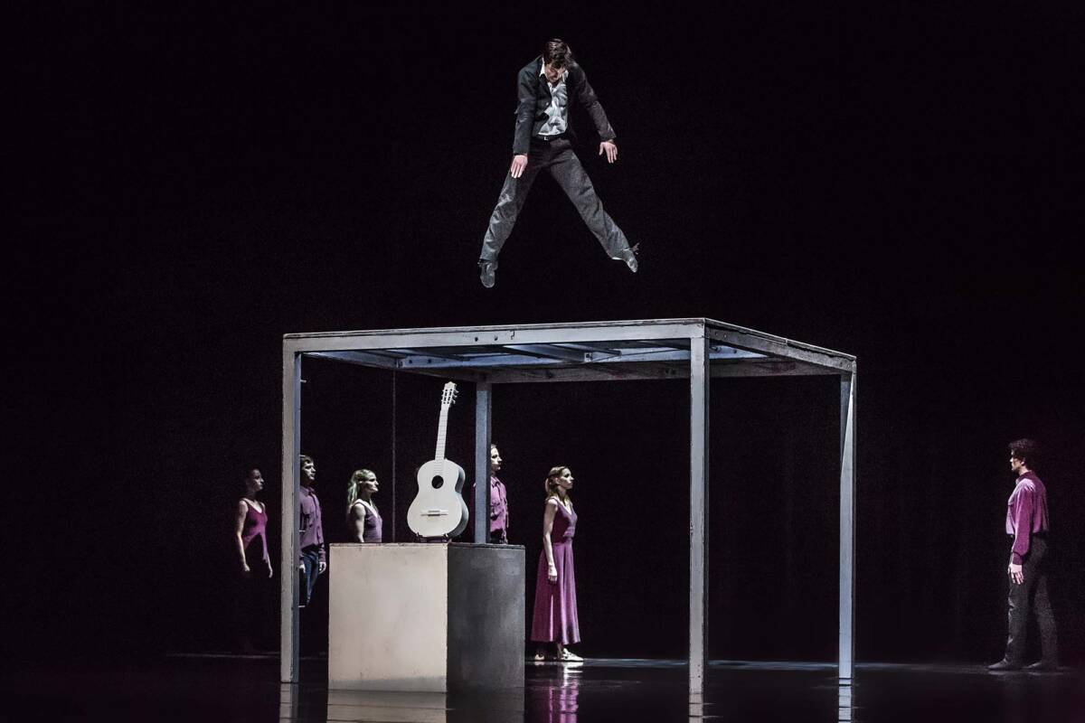 Three poets and singers, three great artists, three humans. Three distinct personalities with different fates, representing three different cultures. Yet notwithstanding their different languages, music and poetics of their lyrics, they had a great deal in common. Today considered classics, even though they did not long to become classics, they seem to speak a similar language. Their words, spurting from the very core of their hearts, are as true as truth can be. Words relentlessly grappling with violence, falsehood and betrayal, always emphasising the value of truth, tenderness and love. Three uncompromising fighters for humanity, all of them having died young, before reaching the age of 50. The dance production, bearing the subtitle Solo for Three, is not sheer narration, rather presenting images blending together into a mosaic, a “flashback” of someone who might have been named Jacques, or Vladimir or Karel … But is does not matter. The “someone” bears within shreds of all the three men, to a certain degree actually speaking for them today. By means of epic and lyric images, in the vein of the vehement protest, ranging from specific humour, gentle pathos, infinite sorrow, to the cognizance of the inevitability of solitude and death. Yet the unfettered inner energy, giving rise to something novel and singular, also exhausts and kills.